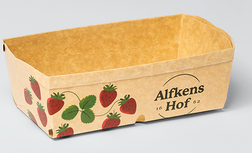 Esta bandeja para bayas se desarrolló como envase de venta sostenible para bayas delicadas. Está fabricada íntegramente en cartón y sustituye a las bandejas de plástico convencionales por una solución estable y reciclable que cumple los requisitos de apilabilidad, manipulación y protección del producto de los minoristas. Utiliza un cartón imprimible de alta calidad con una superficie marrón natural, que transmite una imagen de marca sostenible tanto por su tacto como por su aspecto.