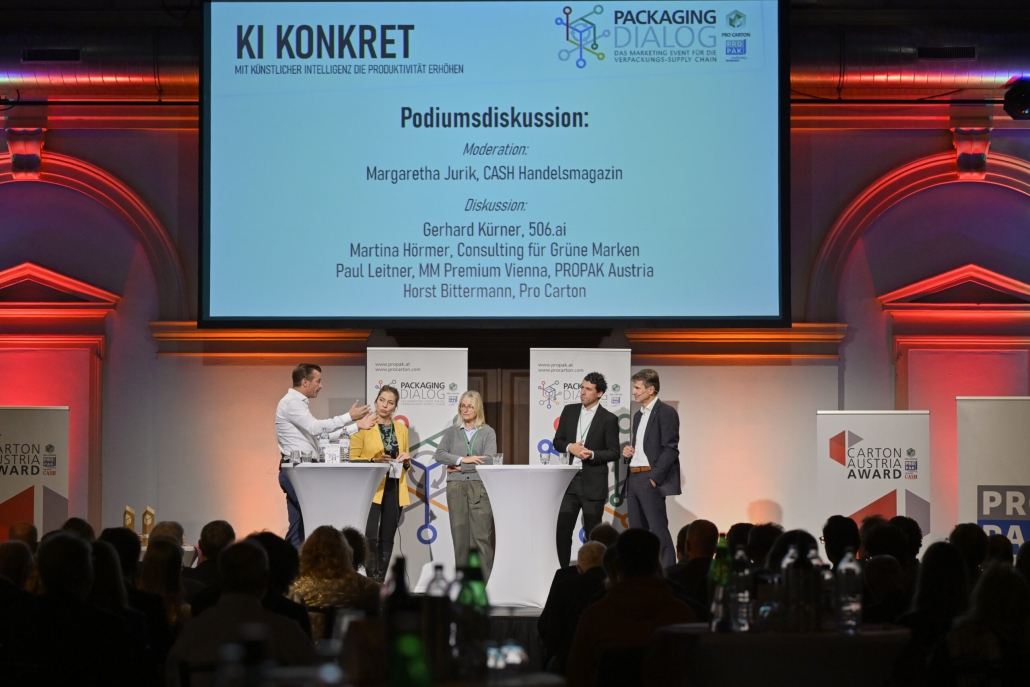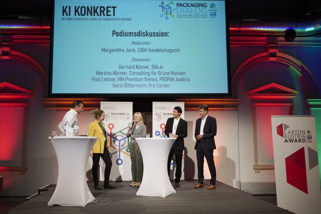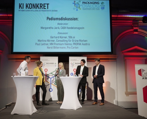 Les présentations ont été suivies d'une discussion animée avec Gerhard Kürner, Horst Bittermann, Martina Hörmer (Consulting for Green Brands), Paul Leitner (MM Premium Vienna, Chairman PROPAK Austria Folding Box Industry) sous la direction de Margaretha Jurik (Editor-in-Chief, CASH Handelsmagazin ).