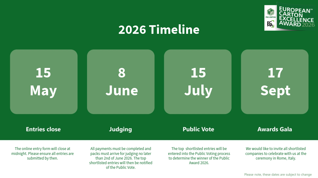 - Alle Beiträge müssen auf Karton hergestellt werden, der von ein Mitglied von Pro Carton.