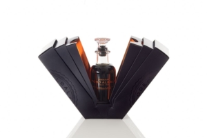 The effect of a flower coming into bloom is accentuated by embossing and matt black varnish on the outside of the pack which mirrors the opening of flower petals. The gift case not only protects the glass bottle inside but also provides a base to support and display the product in style at the point of sale.