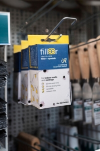 Do you have to buy a whole 1kg bag of wall putty, plus equipment for mixing and spreading, just to fill a few holes or seal one crack? “Fillær“ has an all-in-one solution contained in a disposable carton.“Fillær“ contains 330g of putty, enough to fill 10 holes. It features ingenious perforations which convert it into a bowlshaped container with an ergonomic grip, plus a handy spatula tool to use for spreading. Dry putty can be mixed with water in the packaging, which is made from 300gsm cartonboard. The slant incorporated in the spatula makes it easy to scrape off excess material. “Fillær“ is made exclusively of cartonboard without plastic, which enables eco-friendly disposal. One purchase for a sustainable one-off filling job!