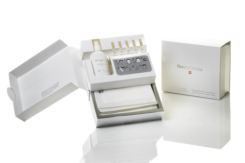 Combining different kinds of products within a box was the major challenge. This plain box securely stores and protects the ampoules, spray bottle and face masks. The aim was to apply a simple design so that every user could store and keep everything in place. In particular, the tray at the bottom of the box helps consumers to gain practical experience while using the product. Instead of a plastic tray and separators, the pack features a unique carton inlay.