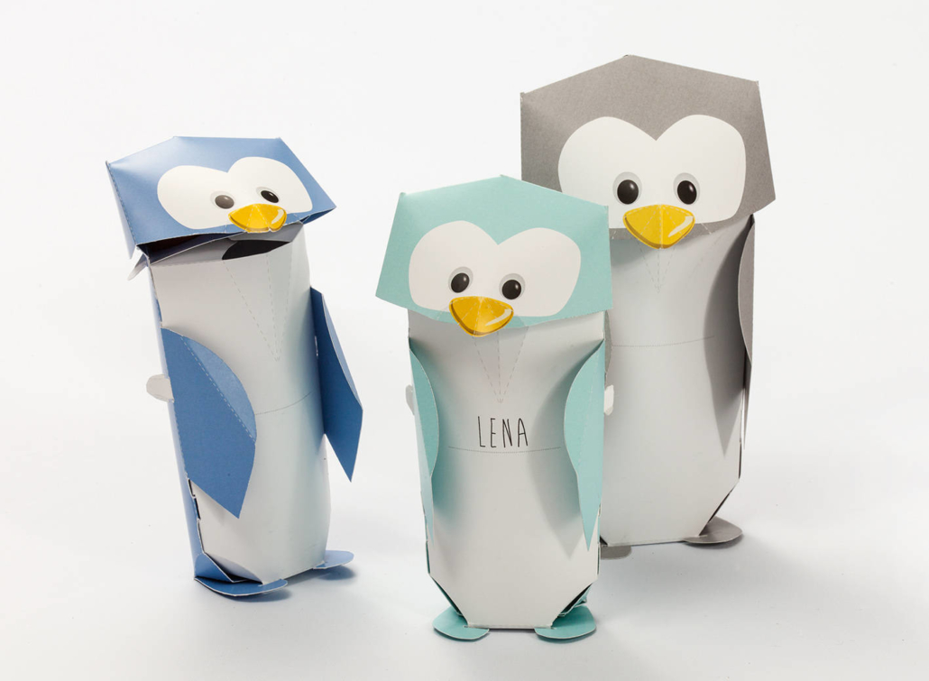 The main idea was to teach kids how to take vitamins without being afraid – and also having fun. The idea of the Penguin came spontaneously. The first challenge was to create a form of penguin made of paper without using glue. It seemed hardly possible to design a carton that would look like a Penguin and look friendly, funny and be functional. Two further challenges were: to create a dosage mechanism and finally to find a way to close the penguin.