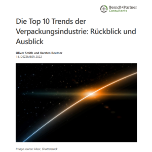 "In unserem ersten Newsletter des Jahres 2022 haben wir die Top 10 Trends in der Verpackungsbranche vorgestellt. Sie waren das Ergebnis einer B+P-Studie, in der wir die wichtigsten und folgenreichsten Marktentwicklungen und Trends genauer unter die Lupe genommen hatten. Im neuen Jahr wollen wir diese Trends auf den Prüfstand stellen - und sehen, was uns im Jahr 2023 erwartet.