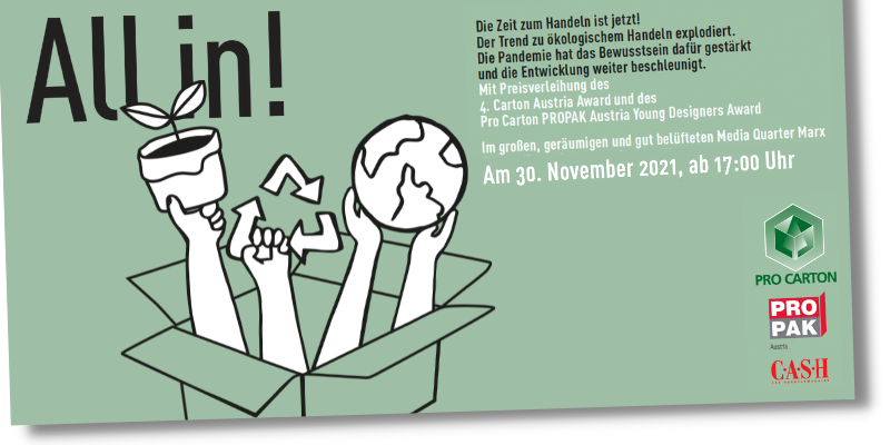 Con la previsión del 4. Carton Austria Award y del Pro Carton PROPAK Austria Young Designers Award Carton Austria Award y el Pro Carton PROPAK Austria Young Designers Award. En el gran, amplio y bien protegido Media Quarter Marx.