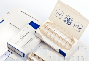 A perfect functional carton that did exactly what it was designed for. The internal structure held the ampoules very safely so they would not be damaged in transit. This internal structure was made completely from cartonboard so the whole pack was made from a single material. Special folding and gluing units were designed to ensure that the carton could be produced and packed fast and efficiently.