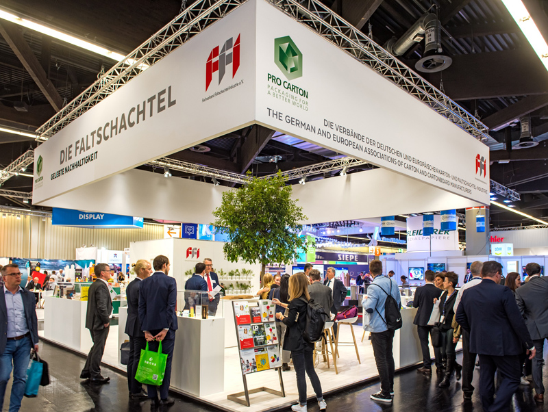 Das Messemotto „Gelebte Nachhaltigkeit“ spiegelte sich auch im Konzept des FFI und Pro Carton-Messestands wieder, bei dem weitestgehend auf die Verwendung von Kunststoff verzichtet und der CO2-Verbrauch durch zusätzliche Klimaschutzprojekte kompensiert wurde, so dass der Messestand klimaneutral gestaltet war.