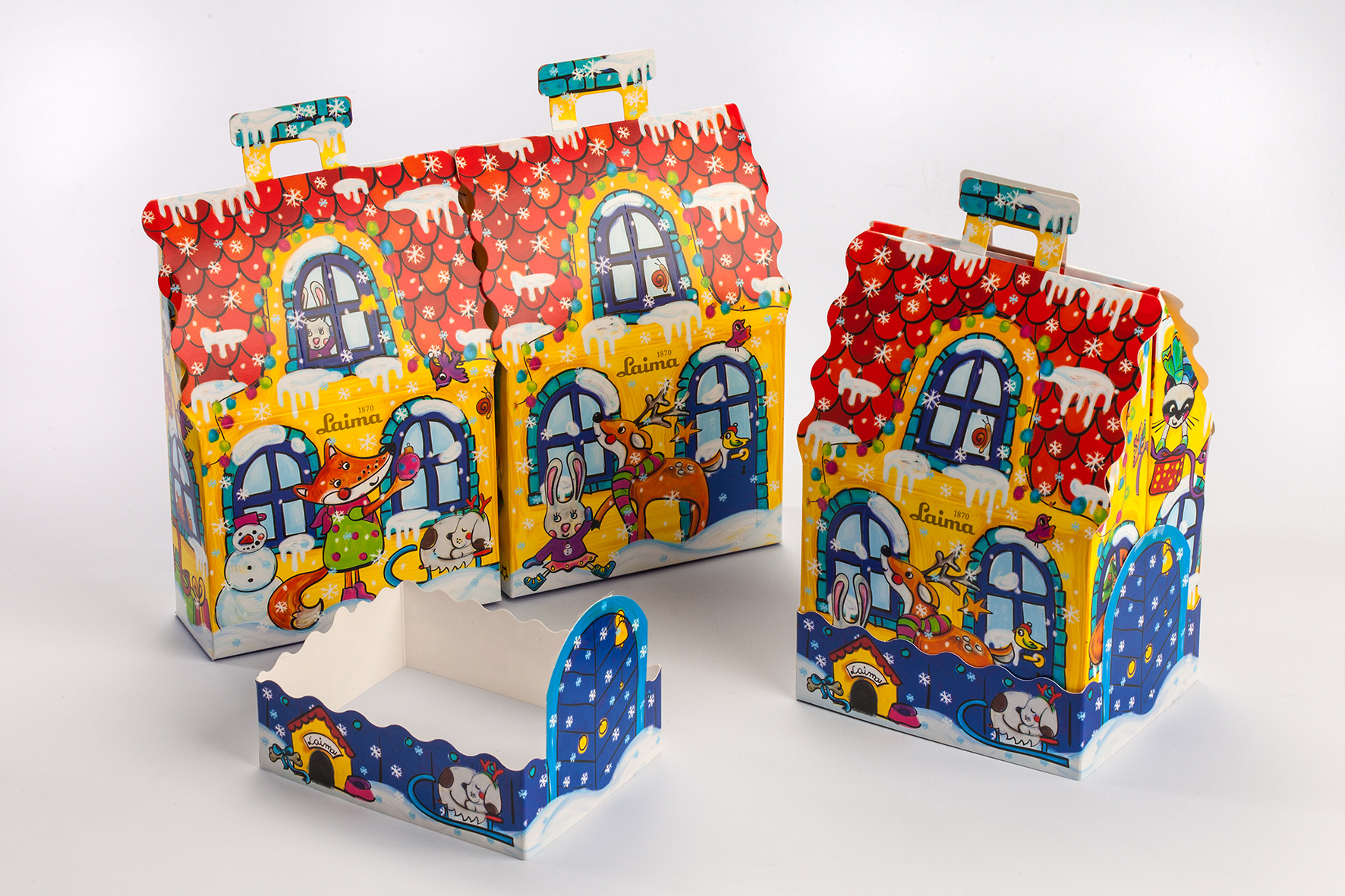The Christmas house can be unfolded in the middle as often as playing children want to, and yet it is made of a single piece of cartonboard. The creative, innovative use of standard techniques resulted in a fantastic carton which can be produced on normal machines and is nonetheless something special.