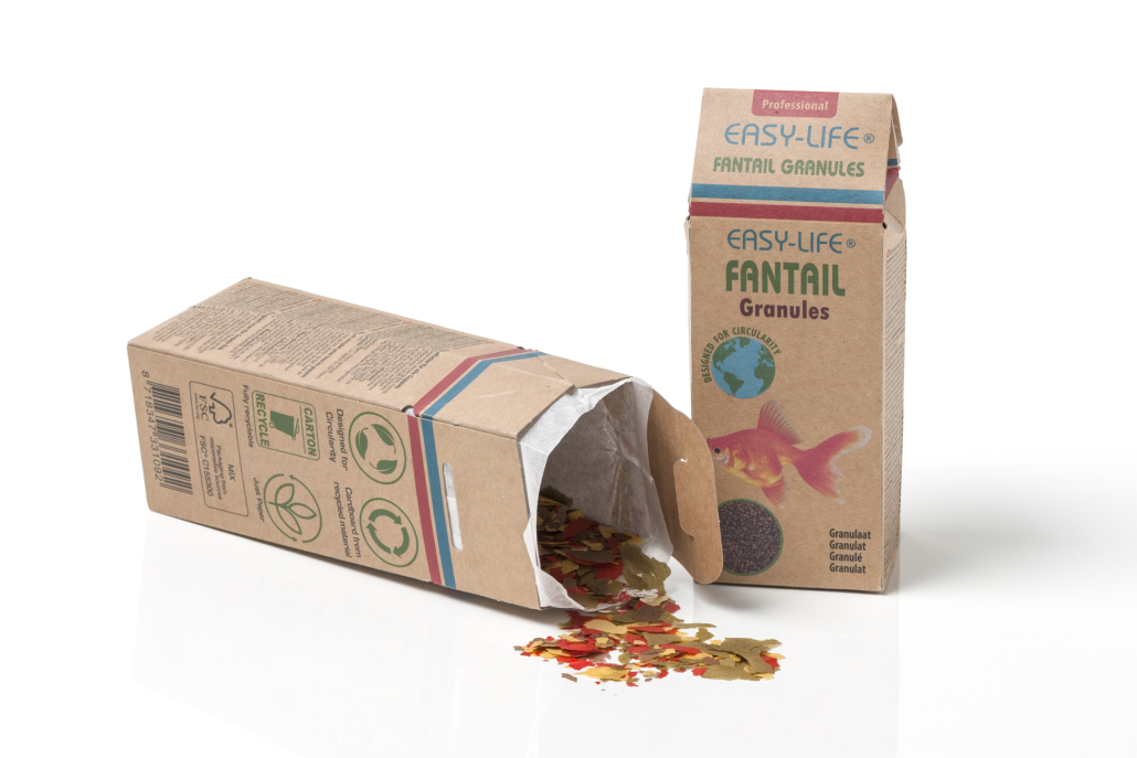 This groundbreaking fish food packaging solution, developed by Snel BV using Smirfit Kappa Hoya cartonboard, is revolutionary. By combining cartonboard and paper in a unique construction, this packaging eliminates the need for plastic, making it a fully circular option. The innovative design effectively addresses the challenges posed by the smell of fish food ingredients, ensuring a fresh and pleasant experience for consumers with its odour-free properties. The fully resealable design and special production techniques ensure a practical and safe solution. All while being made from recycled and FSC-certified materials, making it a truly eco-friendly choice.