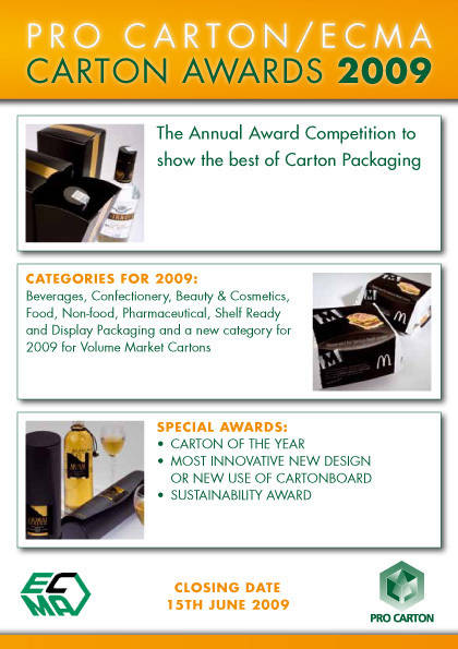 .Pro Carton, in associazione con ECMA, ha lanciato il Carton Awards 2009. Questo evento annuale è ora al suo 13° anno e in questo periodo ha avuto molti esempi eccellenti delle capacità dei produttori e dei designer di cartone. Più ...