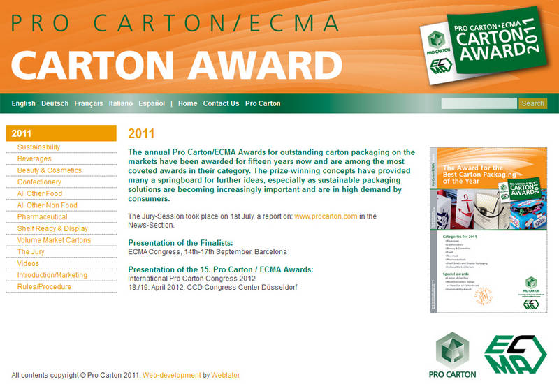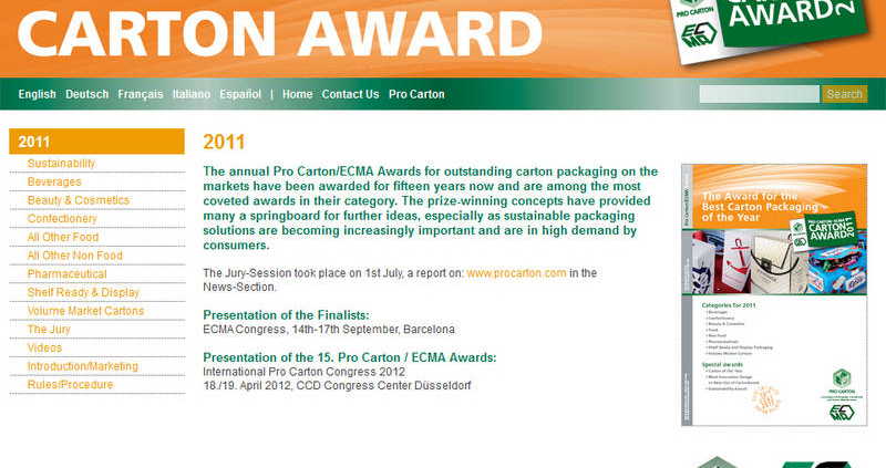 .I finalisti del Pro Carton/ECMA Awards sono stati presentati al Congresso ECMA il 16 settembre 2011 a Barcellona. settembre 2011 a Barcellona. Quest'anno, per la prima volta, Pro Carton ha documentato tutti i finalisti con foto, video e informazioni di base su www.procartonecmaaward.com.