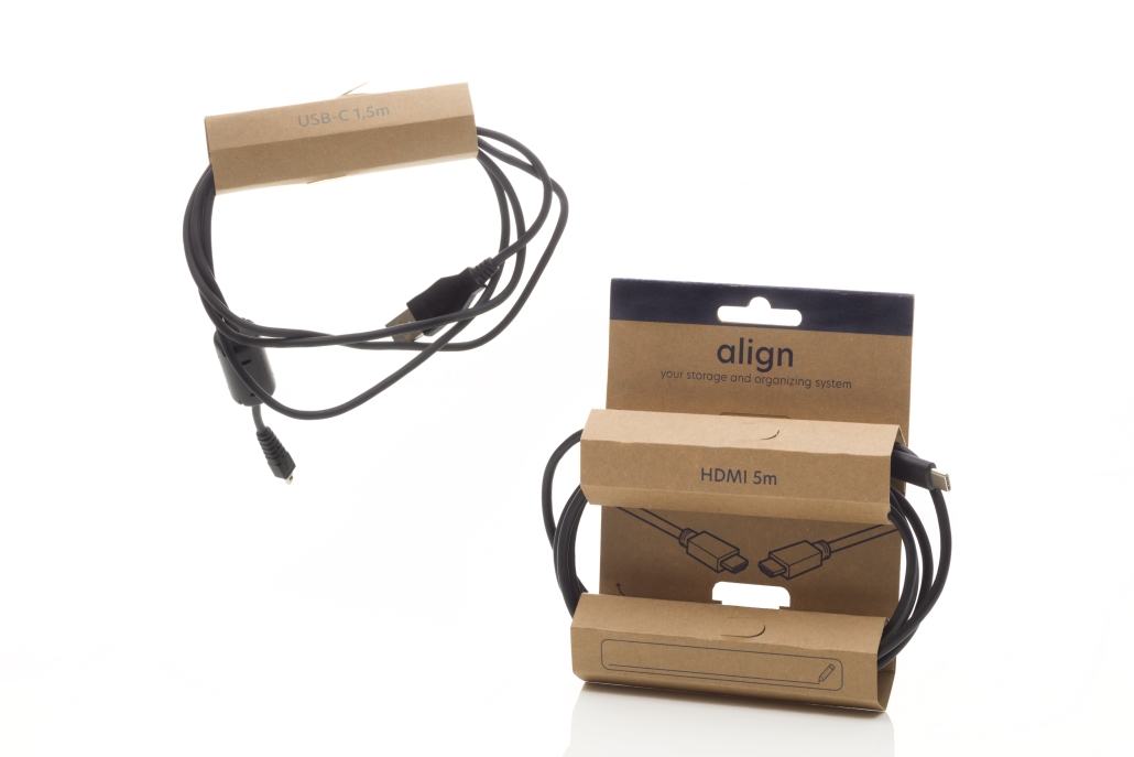 Consumers buy and own various cables which often come in a single-use plastic packaging. Trying to tackle this issue, the idea of a more eco-friendly, alternative packaging inspired us to create “align”. “align” is your new innovative and alternative concept for storing and organizing cables. For secondary use, it allows you to easily organise your new spare cables. Once opened, the tubes can be torn off and used as a single banderole or a combination of several stacked onto each other. Now go ahead and align your cables.