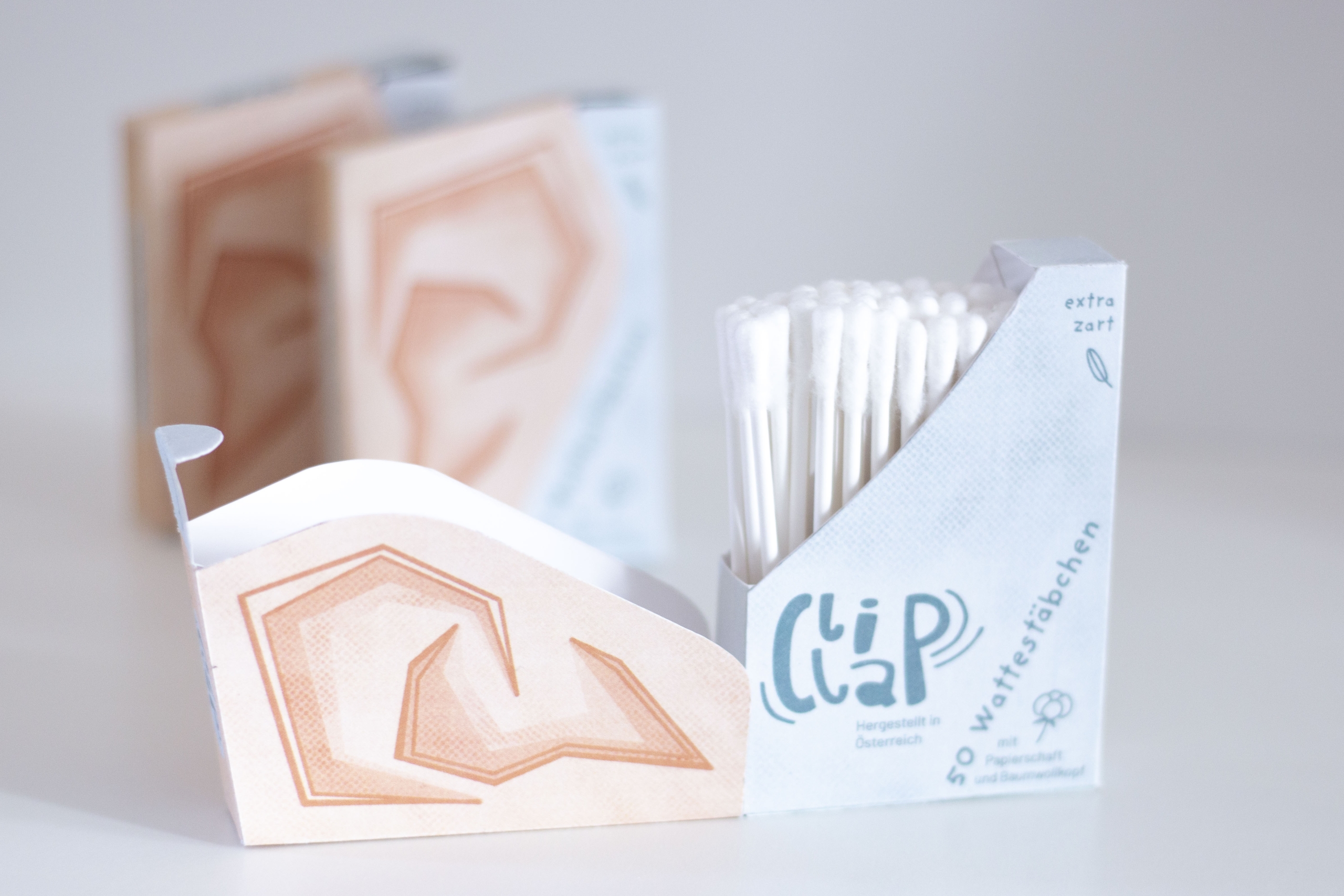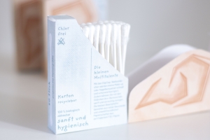 The design of ClipClap cotton swabs is intended to appeal to customers and to provide a convenient on the go solution. Single cotton swabs can be conveniently taken out and the package is easy to open and reclose. An environmentally friendly and lightweight alternative to plastic containers.