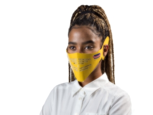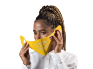 Clever thinking that uses cartonboard to create a mask addressing one of the needs in the pandemic. It also features a food safe filter to reduce the spread of droplets and aerosols. The construction fits all heads as the size of mask can be adjusted at the ear openings.