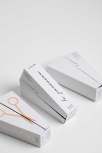 To transfer the quality and the values of the brand, we did not use plastics but only cardboard for this scissors packaging. Furthermore we created an unboxing experience by mimicking the mechanism of a pair of scissors for easy opening of the pack.