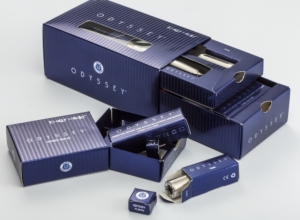 The packaging with alternating matt and gloss varnish on solid blue was developed in only six weeks! This resulted in additional turnover. The product launch of the premium range of e-cigarettes was rewarded by the market with excellent reorder values.