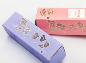 Brand owner Mylène wanted packaging with a persuasive appeal at the POS. Antilope had the idea of employing a new technology for digital cutting and creasing. Co-operation was extremely close: when Mylène suggested a flower with fine cuts at the edges, Antilope made sure that the flower not only appeared on the side but also the front as well as adding the lettering “Limited edition”. Next to being effective at the POS, simple and practical recycling were also an objective. This solution satisfies both aims ideally.