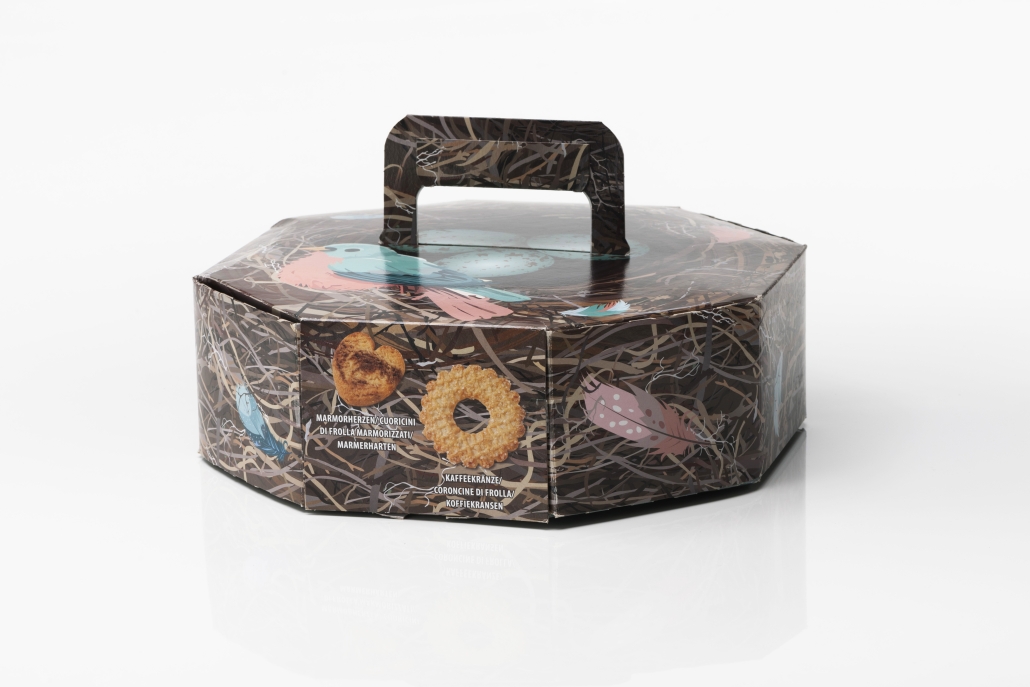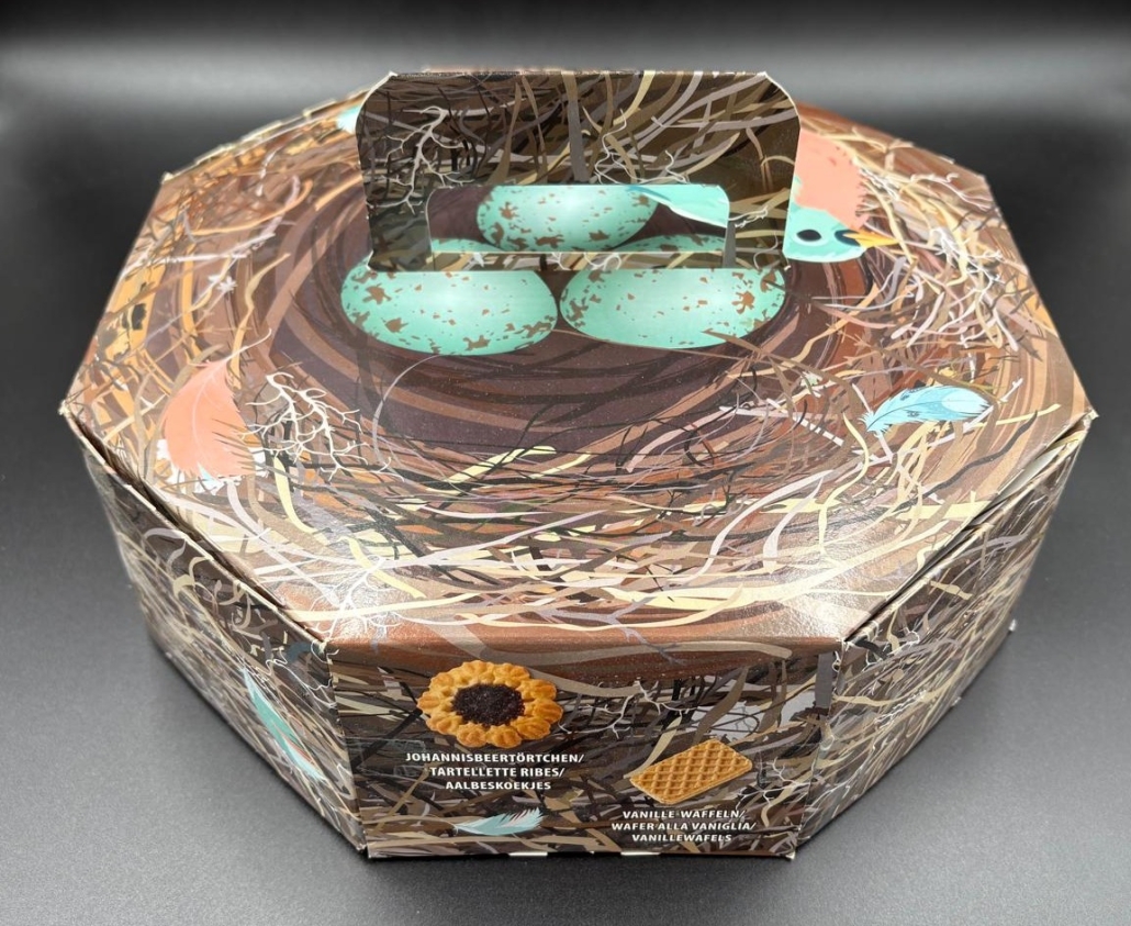 The Eismann Frühlingsgebäckmischung packaging reimagines the traditional cookie tin with a fresh, sustainable twist. Inspired by the shape and symbolism of a bird’s nest, the round, stackable design offers a new take on seasonal gifting that balances sustainability with everyday convenience.