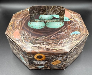 The result is packaging that is thoughtful and functional. It stacks efficiently for storage and transport and enhances the unboxing moment through its natural, nest-like form. With its distinctive silhouette and low-impact materials.