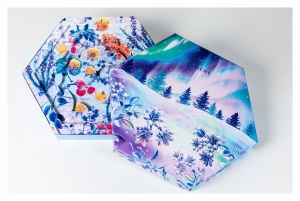 Visually, the calendar evokes the serene beauty of Nordic nature. Snowy landscapes and native berries are brought to life on high-brightness board, with translucent holographic foil and 3D embossing adding festive shimmer and tactile appeal, without compromising recyclability.