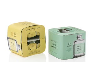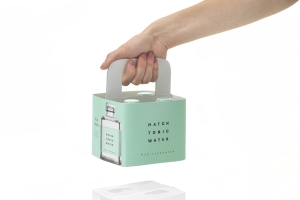 This design is specially conceived to house four units of this disruptive design, square recycled glass bottle for a tonic water, and specifically focused on e-commerce. The multi-pack unit design matches the aesthetics of the bottle – square with round corners in the shape of a basket and folding handles that offer a double function: easy to carry, plus offering a space-efficient design for transportation and storage while also protecting the bottles: Multiple layers can be stacked on palettes without the need for additional protective sheets.