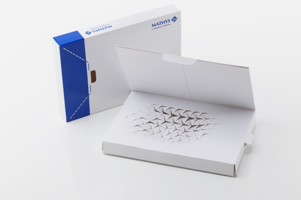 The new packaging concept for Mathys AG’s hip and knee implants replaces the previous polyurethane foam inlay with a fully recyclable, paperboard-only solution – combining medical-grade protection with environmental responsibility.