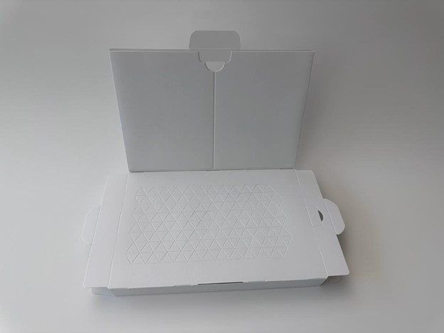 Designed as a custom three-piece structure, the packaging includes an integrated paperboard honeycomb inlay that adapts precisely to the shape of the implant, ensuring secure stabilisation without the need for additional materials.