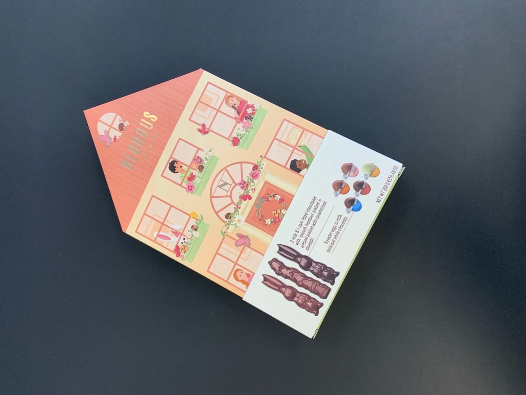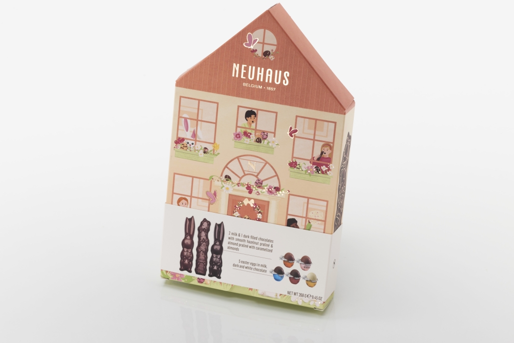 Presented in a spring-themed box shaped like a cosy home, the packaging captures the warmth and joy of the Easter season. Designed to appeal to both children and adults, the house shape evokes a sense of familiarity and celebration, while the clever thumb tab and flap closure ensure the box can be opened and resealed without damage.